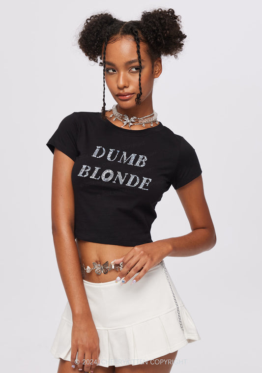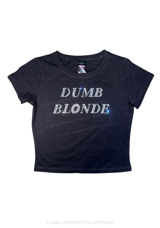 Rhinestone Dumb Blonde Y2K Baby Tee Cherrykitten