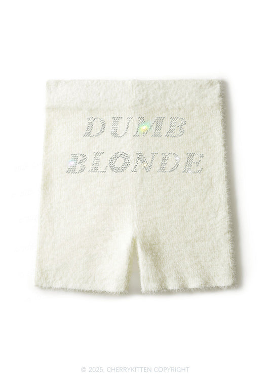 Rhinestone Dumb Blonde Y2K Fluffy Shorts Cherrykitten