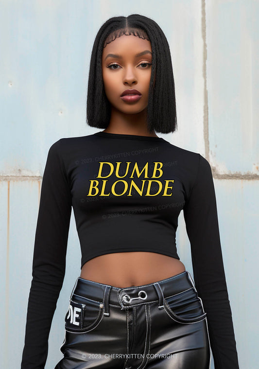 Dumb Blonde Long Sleeve Crop Top Cherrykitten