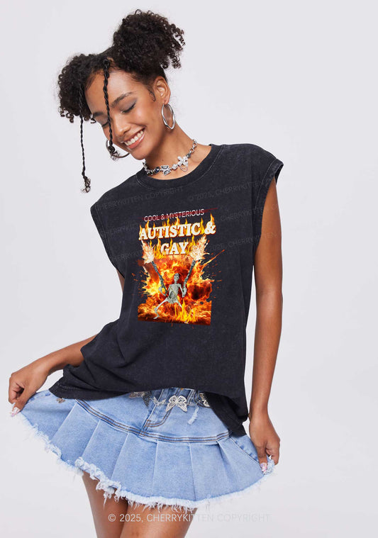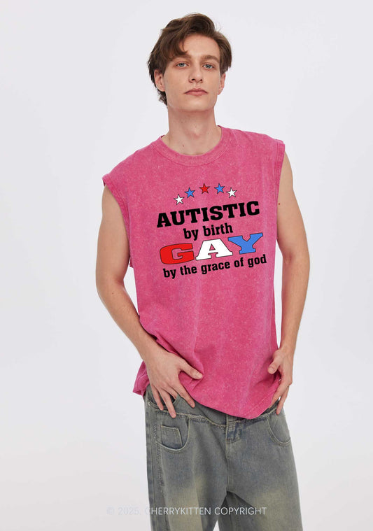 Autistic By Birth Gay Pride Y2K Washed Muscle Tank Cherrykitten