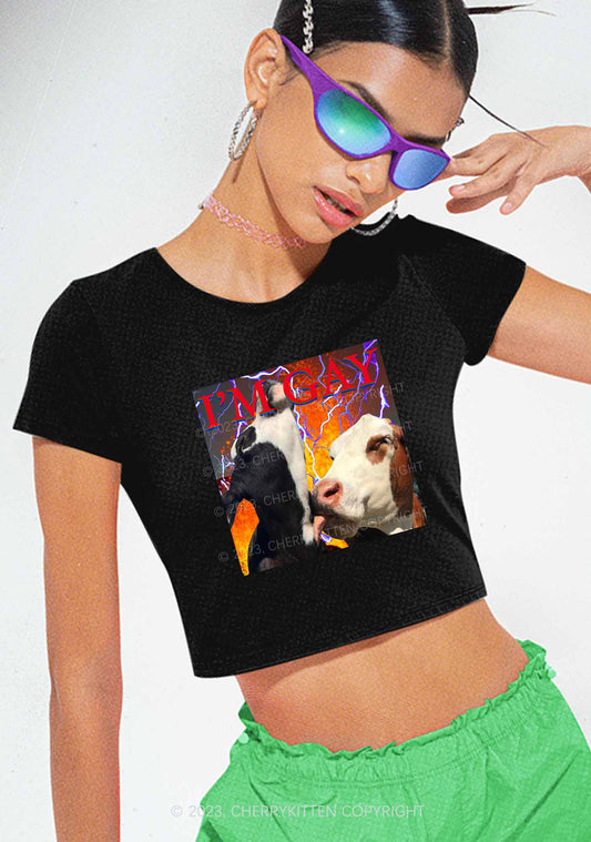 Gay Cow Play Y2K Baby Tee Cherrykitten
