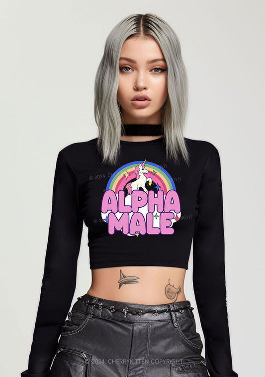 Rainbow Unicorn Alpha Male Y2K Long Sleeve Crop Top Cherrykitten