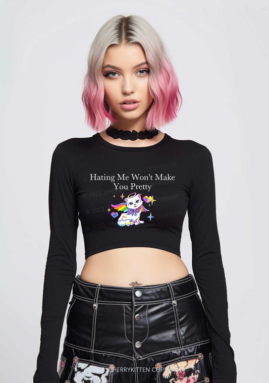 Hating Me Won't Make You Pretty Long Sleeve Crop Top Cherrykitten