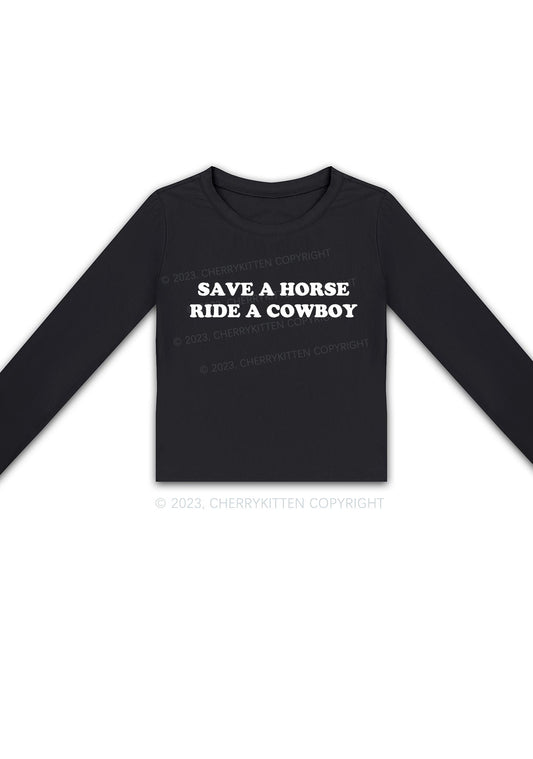 Save A Horse Y2K Long Sleeve Crop Top Cherrykitten