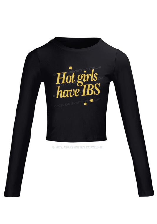 Hot Girls Have IBS Long Sleeve Crop Top Cherrykitten