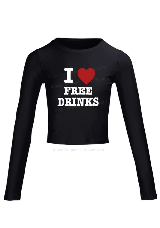 I Love Free Drinks Long Sleeve Crop Top Cherrykitten