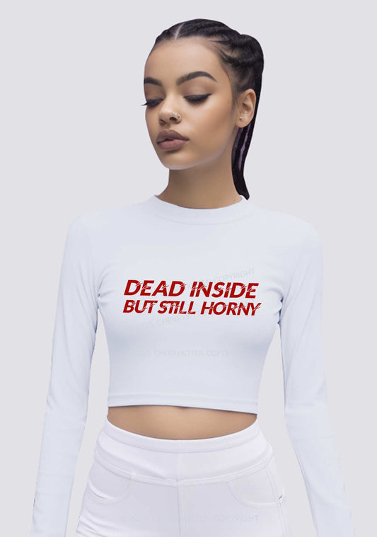Dead Inside But Still Thirsty Long Sleeve Crop Top Cherrykitten