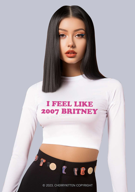I Feel Like 2007 Britney Long Sleeve Crop Top Cherrykitten
