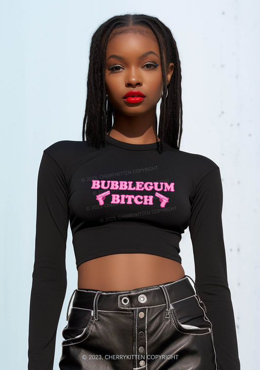 Bubblegum Bxtch Long Sleeve Crop Top Cherrykitten
