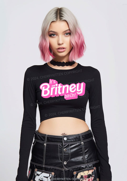 It's Britney Bixch Y2K Long Sleeve Crop Top Cherrykitten