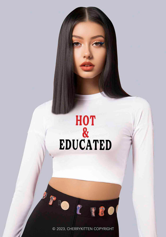 Hot And Educated Long Sleeve Crop Top Cherrykitten