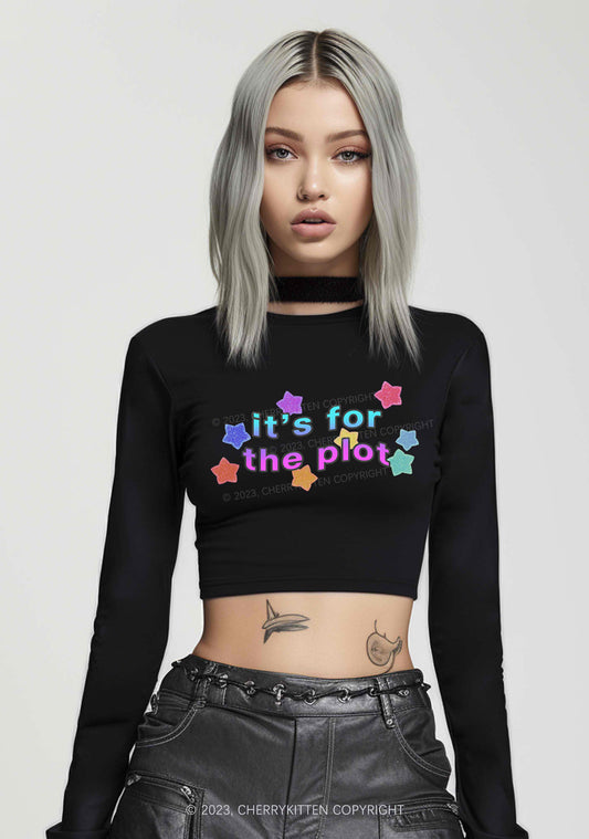 It's For The Plot Stars Y2K Long Sleeve Crop Top Cherrykitten