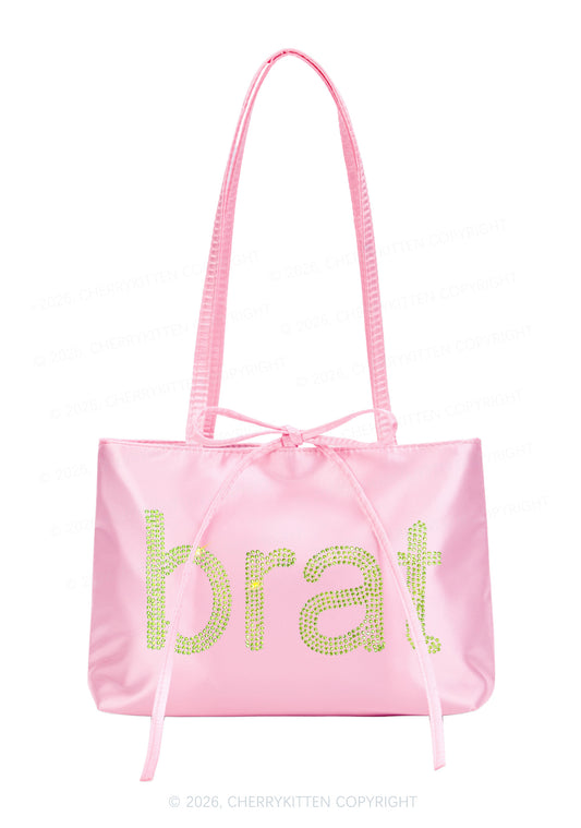 Rhinestone Green Brat Y2K Satin Bags Cherrykitten