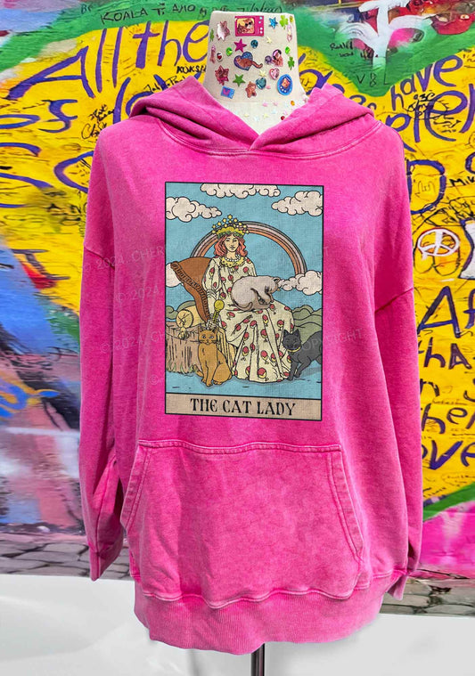 The Cat Lady Y2K Washed Hoodie Cherrykitten