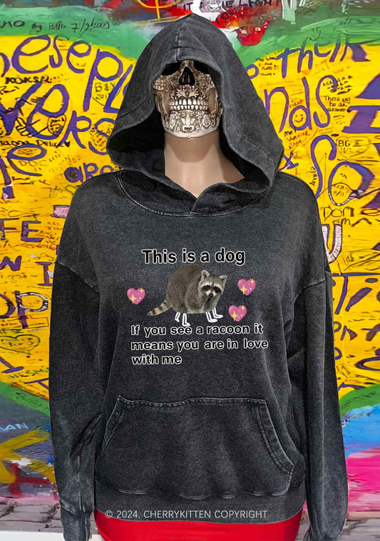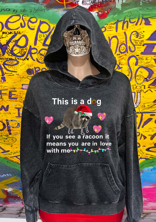 Christmas Dog Racoon Y2K Washed Hoodie Cherrykitten