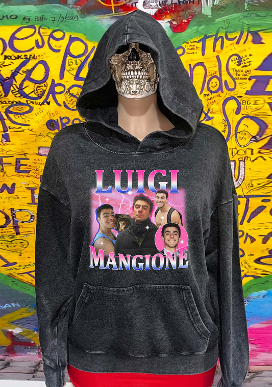 Bluepink Luigi Portrait Y2K Washed Hoodie Cherrykitten