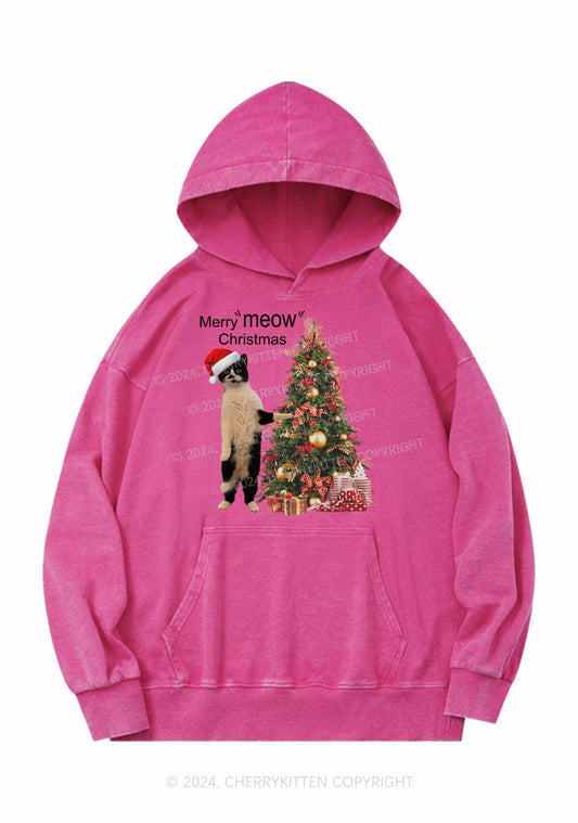 Merry Meow Christmas Y2K Washed Hoodie Cherrykitten