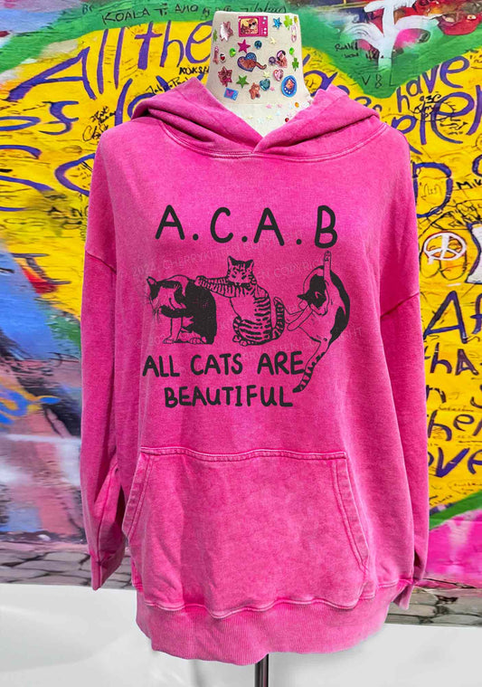 ACAB Cats Y2K Washed Hoodie Cherrykitten
