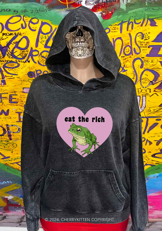 Eat The Rich Frog Y2K Washed Hoodie Cherrykitten