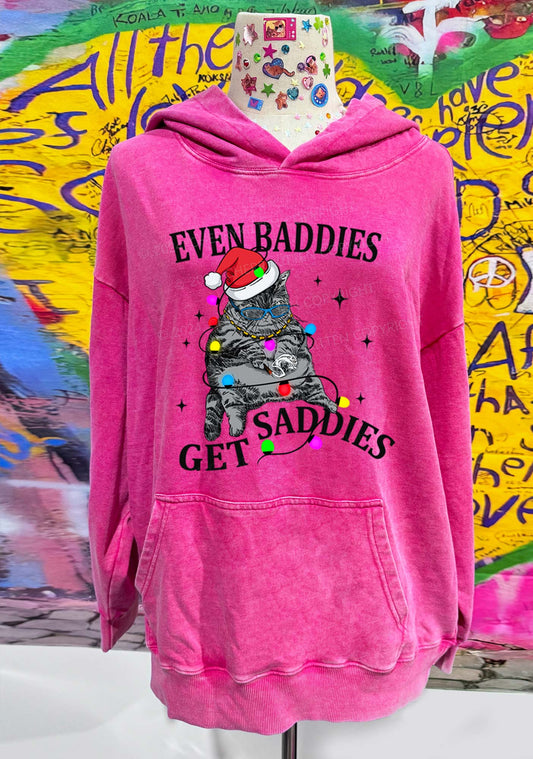 Even Baddies Get Saddies Y2K Washed Hoodie Cherrykitten