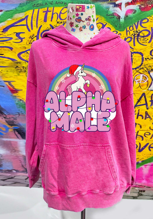 Rainbow Unicorn Alpha Male Y2K Washed Hoodie Cherrykitten