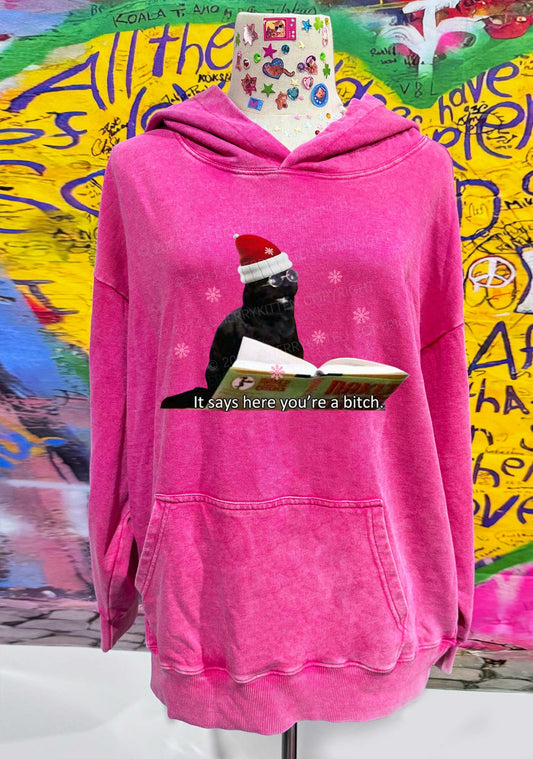 Christmas Cat Bxxch Y2K Washed Hoodie Cherrykitten