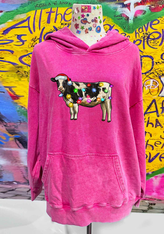 Christmas Cow Y2K Washed Hoodie Cherrykitten