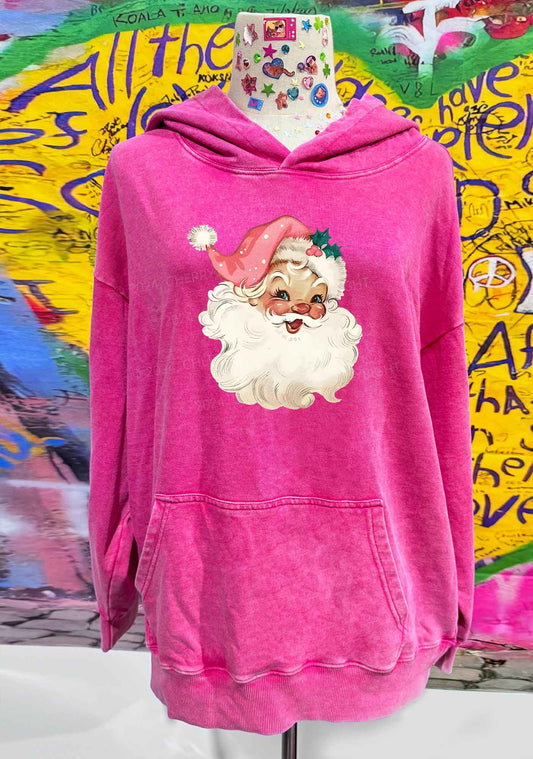 Christmas Pink Santa Y2K Washed Hoodie Cherrykitten