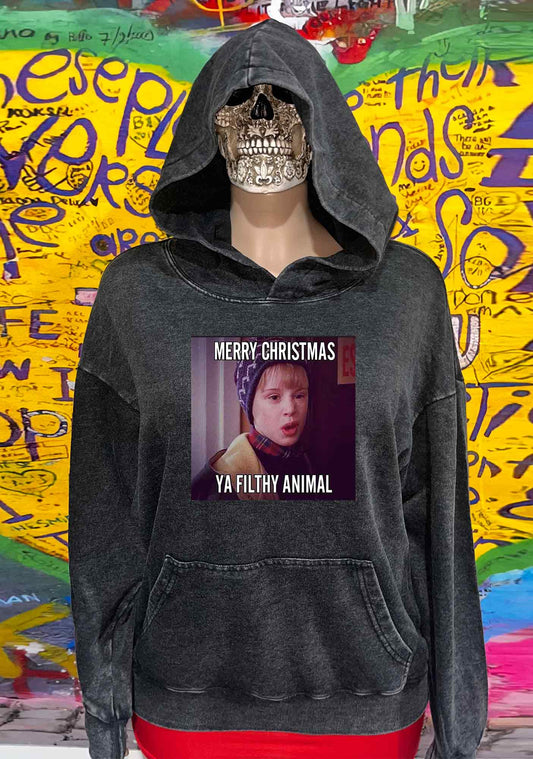 Merry Christmas Ya Filthy Animal Y2K Washed Hoodie Cherrykitten
