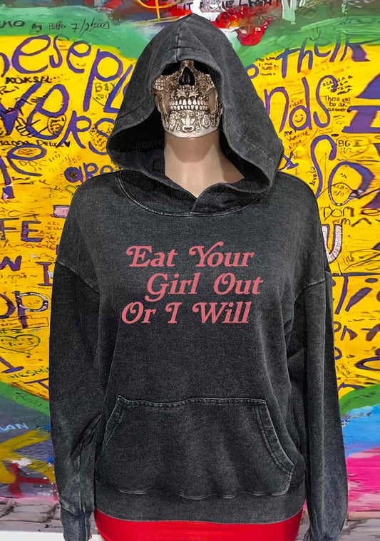 Eat Your Girl Out Y2K Washed Hoodie Cherrykitten