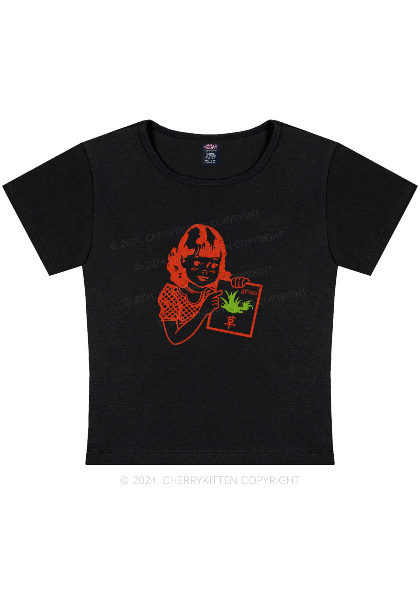 Curvy Green Grass Y2K Baby Tee Cherrykitten