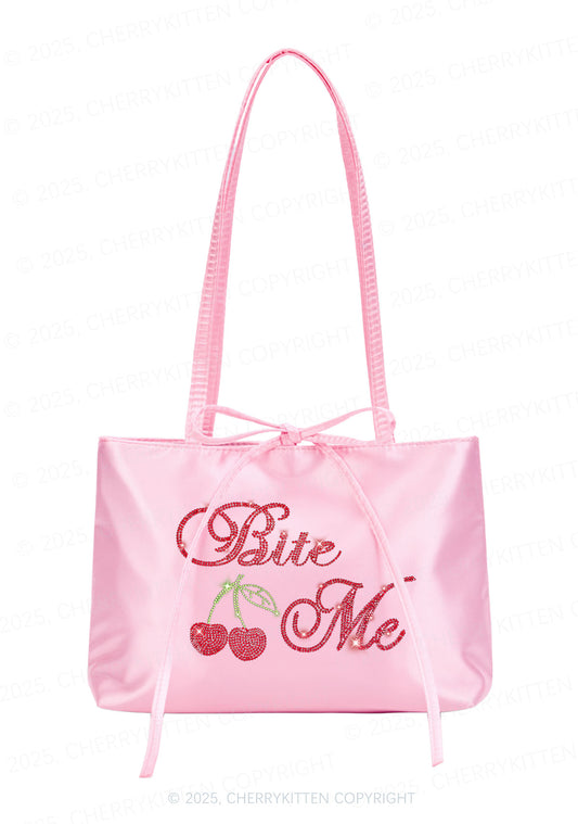 Rhinestone Red Cherry Bite Me Y2K Satin Bags Cherrykitten
