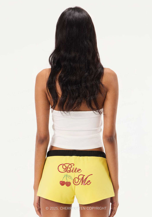 Rhinestone Red Cherry Bite Me Y2K Drawstring Mini Shorts Cherrykitten