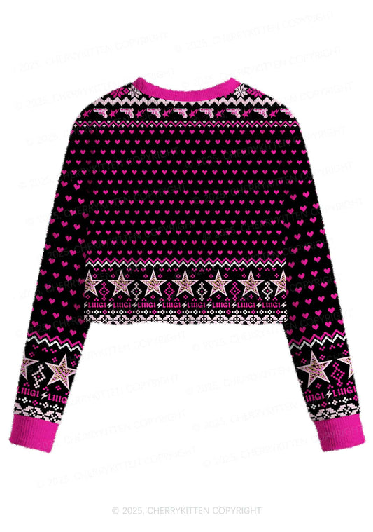 Daddy I Love Him Luigi Y2K Christmas Crop Knit Sweatshirt Cherrykitten