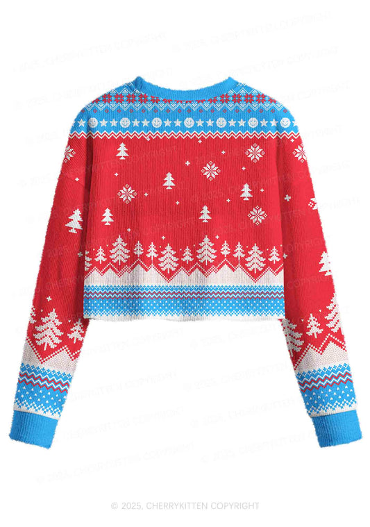 Blue Awake But What Cost Y2K Christmas Crop Knit Sweatshirt Cherrykitten