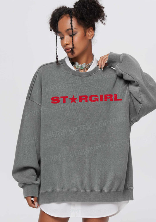 Red Stargirl Y2K Washed Sweatshirts Cherrykitten