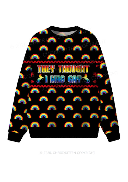 I Was Gay Pride Y2K Christmas Knit Sweatshirt Cherrykitten