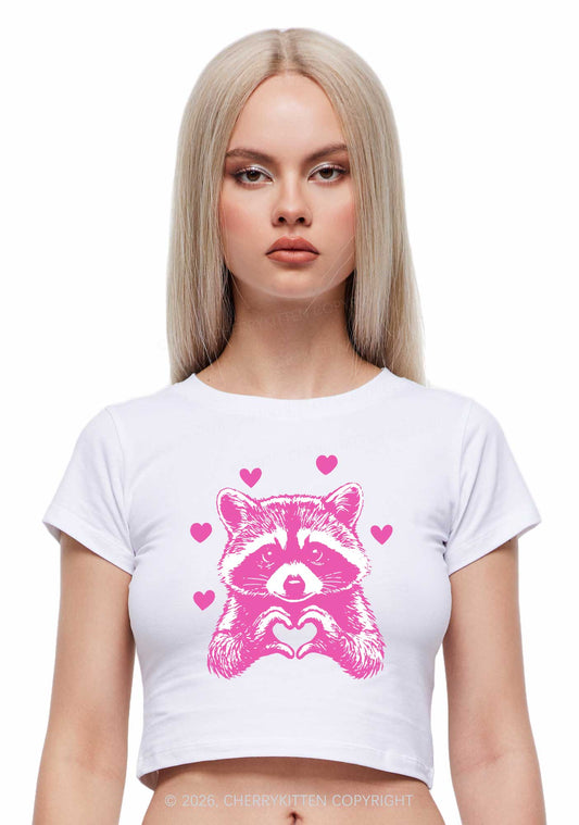 Pink Raccoon Heart Valentine's Day Y2K Baby Tee Cherrykitten