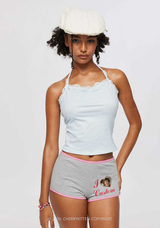 I Love Custom Photo Valentine's Day Y2K Booty Shorts Cherrykitten