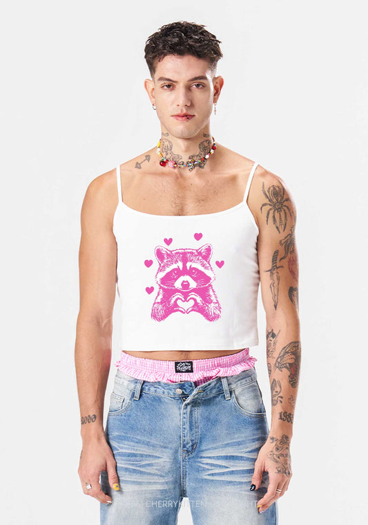 Pink Raccoon Heart Valentine's Day Y2K Crop Tank Top Cherrykitten