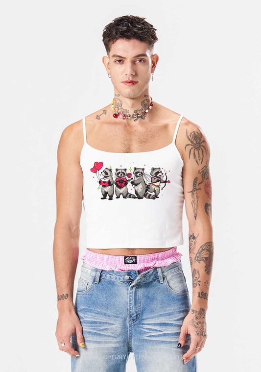 Raccoon Cupids Valentine's Day Y2K Crop Tank Top Cherrykitten