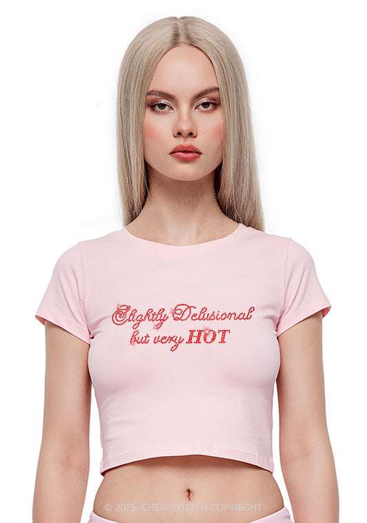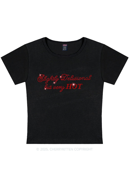 Rhinestone Slightly Delusional But Very Hot Y2K Baby Tee Cherrykitten