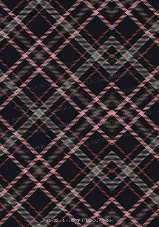 Pink Plaid Y2K Print Long Sleeve Pajama Set Cherrykitten