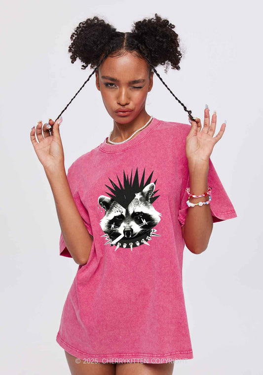 Punk Raccoon Y2K Shirts Washed Tee Cherrykitten