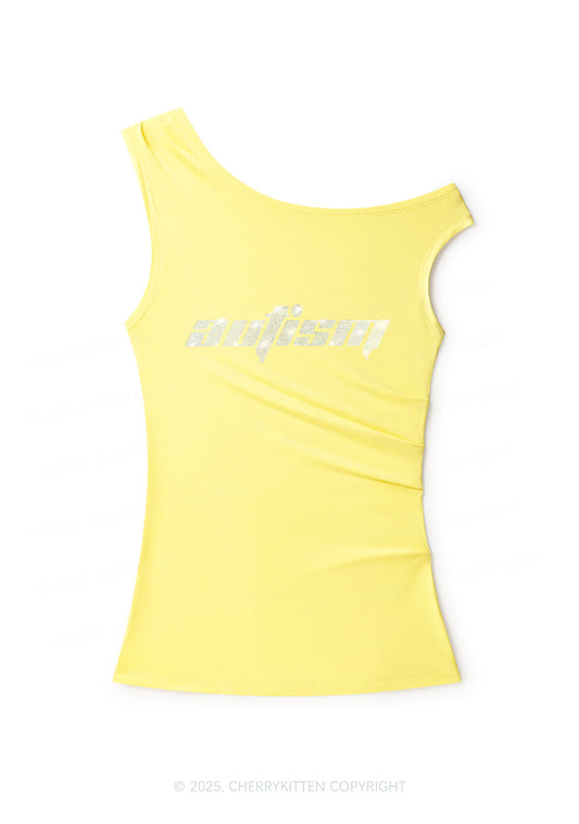 Rhinestone A Little Bit Dramatic Y2K One Shoulder Tank Top Cherrykitten