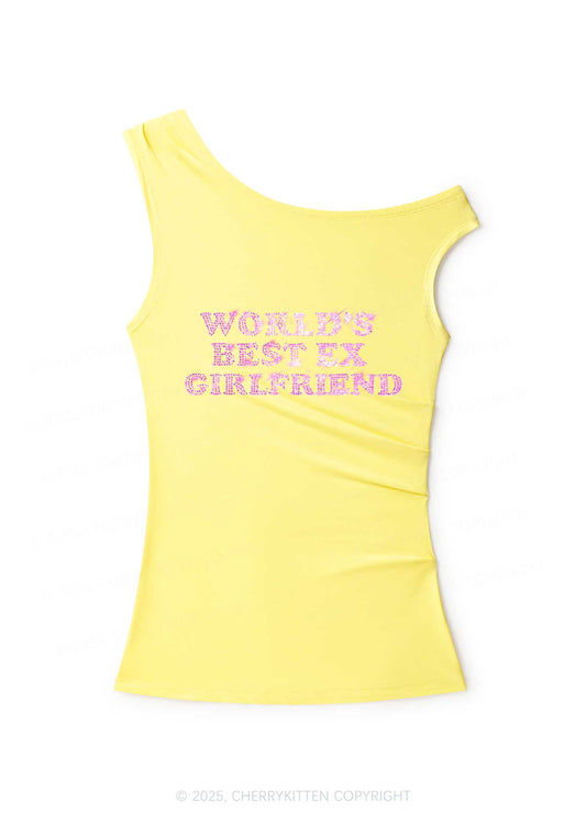 Rhinestone Best Ex Girlfriend Y2K One Shoulder Tank Top Cherrykitten