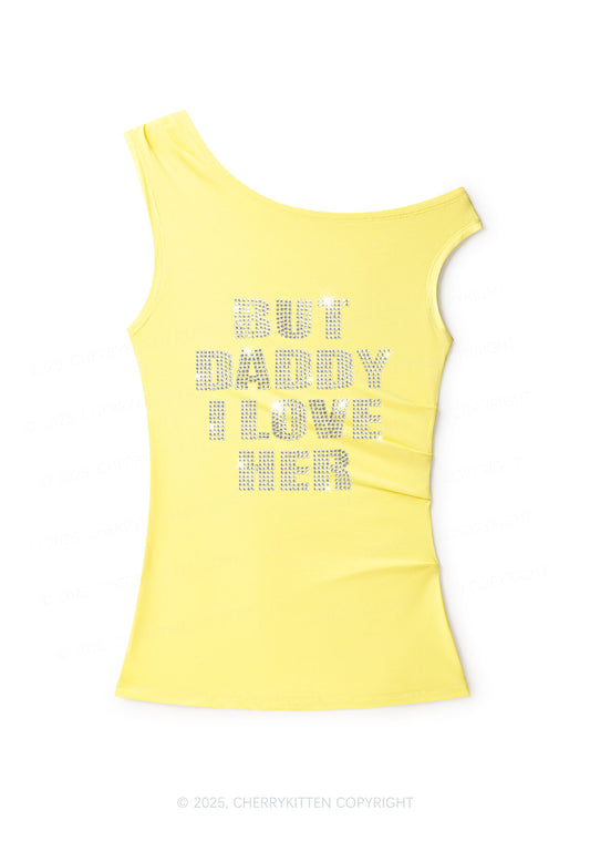 Rhinestone But Daddy I Love Him Y2K One Shoulder Tank Top Cherrykitten