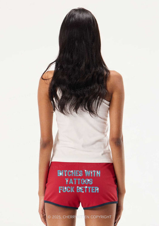 Rhinestone Bxxches With Tattoos Fxxk Better Y2K Booty Shorts Cherrykitten