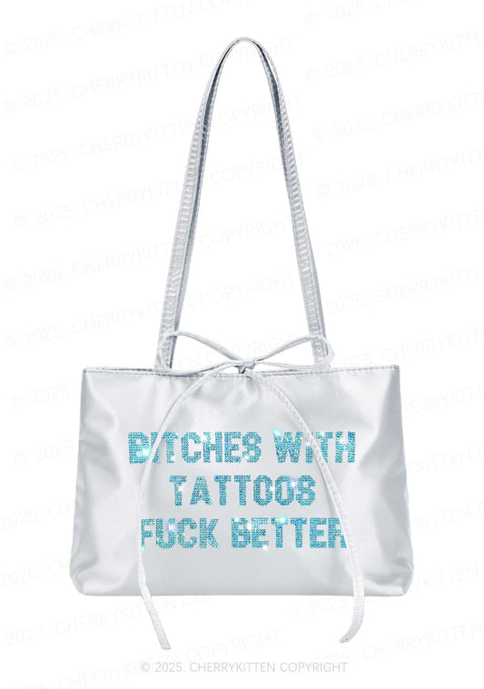 Rhinestone Bxxches With Tattoos Fxxk Better Y2K Satin Bags Cherrykitten