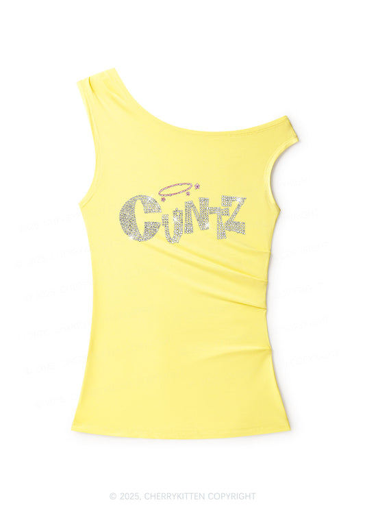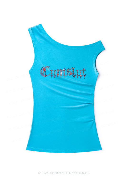 Rhinestone Cxntz Y2K One Shoulder Tank Top Cherrykitten